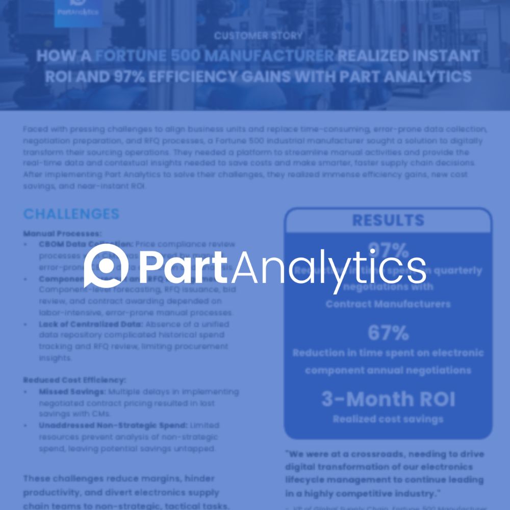 Fortune 200 industrial manufacturer ITW sees 5% total cost savings and over 10x ROI in just six months with Part Analytics